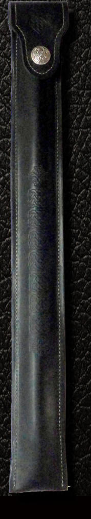 We produce a range of cases for key less Irish D Flutes, Bd Flutes and keyed flutes. We can make cases for other Irish wind instruments on request.We supply a number of flute manufacturers and distributors world wide with cases and also offer cases which can be special ordered personalized with a name or specific Celtic pattern. Our cases offer excellent protection as we use top grade vegetable tanned leathers and the option of suede lining for additional charge.Our cases are offered in carbon black, medium brown and natural. The natural will age into a beautiful, honey color and are “mellowed” for a few days in the Arizona sun. All of our cases should outlast the instrument. Our flute case is based on a 19th century design by Boosey of London.