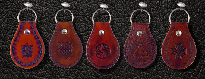 Tucson Leather Works produces a full range of inexpensive leather items for the Celtic and South West gift shop marketplace.These include key fobs, wrist bands, bracelets, belts and wallets ranging from from inexpensive to more expensive hand tooled belts and wallets.